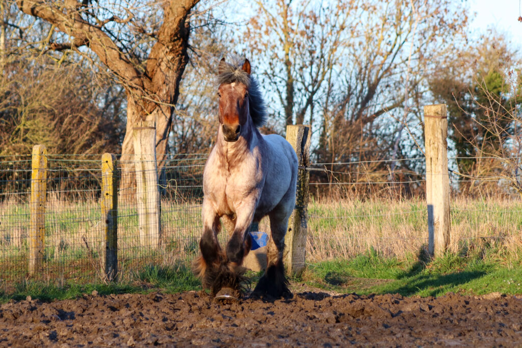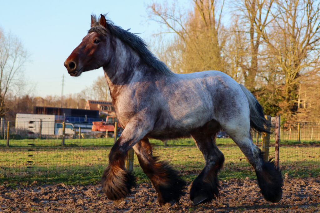 Norman is a real eye-catcher! With his large feet, correctly conformed legs, strong back, well-sloped shoulder, and well-developed hindquarters, he presents himself as a harmoniously built stallion with beautiful proportions and an alert, expressive head. His presence and conformation leave no doubt that Norman can be described as highly typical of his breed.
